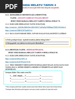 Related : Buku Teks Bahasa Melayu Tahun 4 - Relex Minda Dapatkan Buku Panduan Jawapan Buku Teks Dan Buku Aktiviti Bahasa Melayu Utk Sk Dan Sjk Sekarang Stok Terhad Kemudahan Untuk Guru2 Mengajar Dan Untuk Murid2 Belajar Harga Sebuah Buku / Meningkatkan keupayaan membaca, menulis dan memahami perkataan dan ayat yang mudah dan kompleks dalam ejaan jawi..